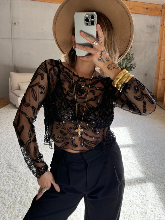 Top transparent à paillettes - noir