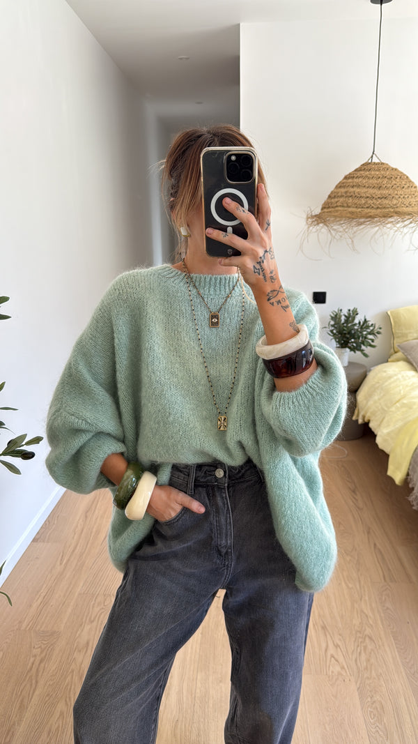 Pull oversize Mohair - vert d'eau - Taille unique est en rupture de stock et sera envoyé dès qu'il sera disponible