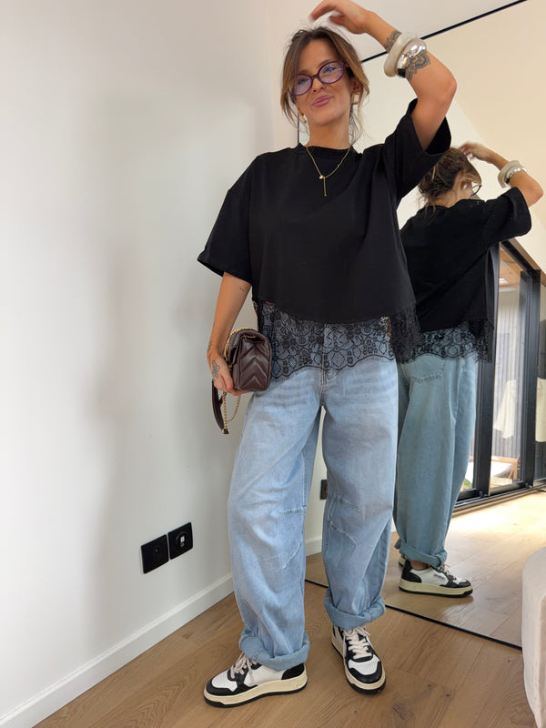 Tee-shirt à dentelle - noir - Taille unique est en rupture de stock et sera envoyé dès qu'il sera disponible