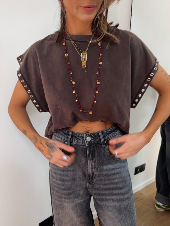 Top à perles - chocolate