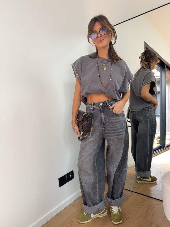 T-shirt à oeillets - gris chiné