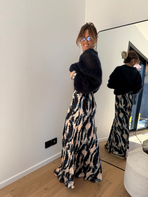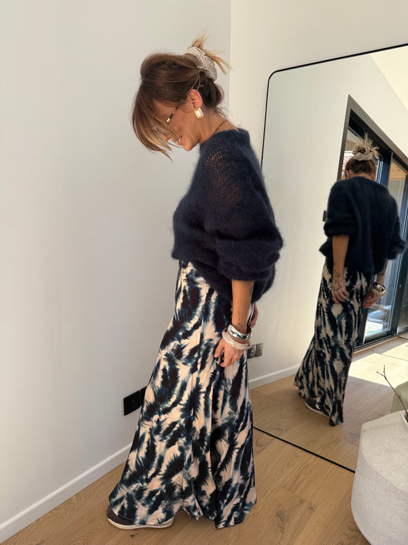 Jupe fluide à motifs - bleue