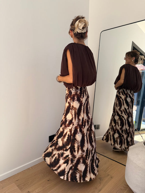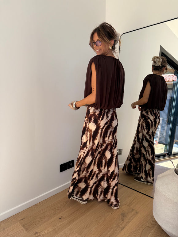 Jupe fluide à motifs - marron
