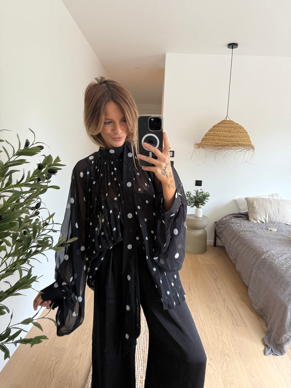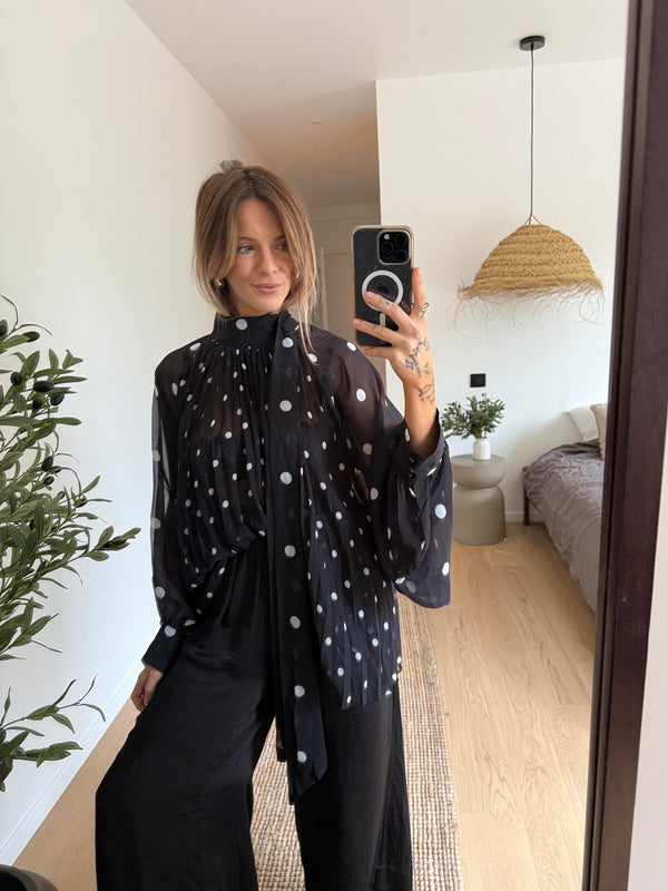 Blouse à pois - noir - Taille unique est en rupture de stock et sera envoyé dès qu'il sera disponible